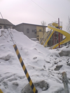 角度的なものもあるけどね、でも滑り台の高さくらいまで雪山ができてたよ。