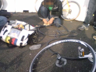 しかし、チューブの予備がない。パッチを張るのりが切れてる。さーて、どうしようか。